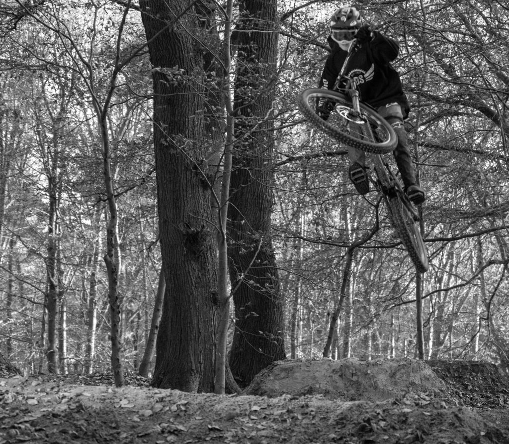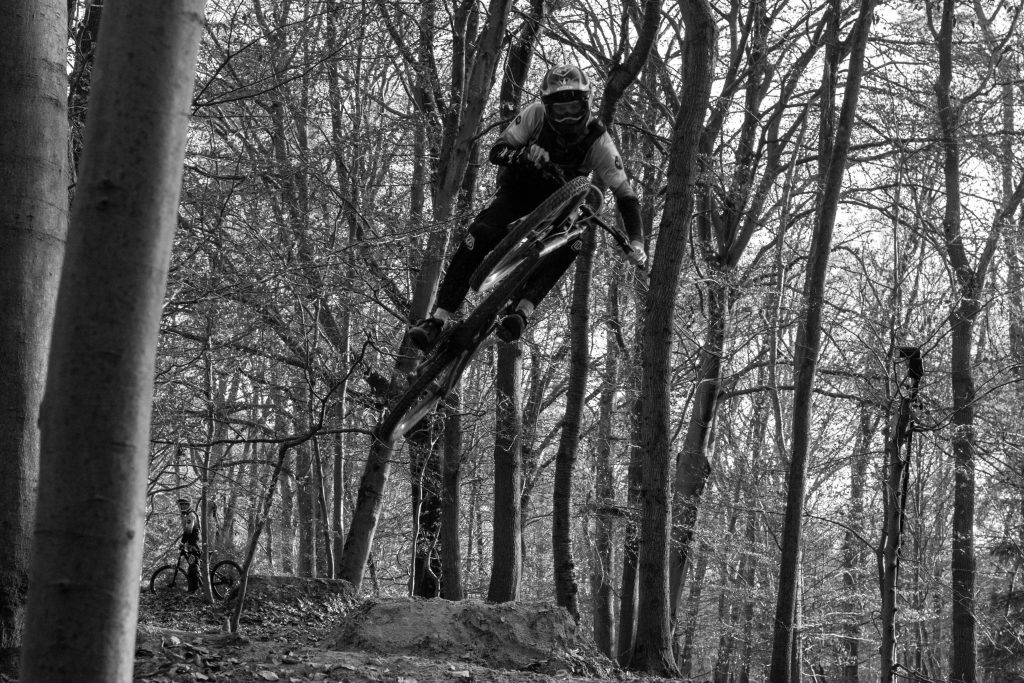 Fotografin Bonn: Action-Aufnahme eines Mountainbikers beim Sprung | Hochwertige Bilder für den Webshop kamaka.info